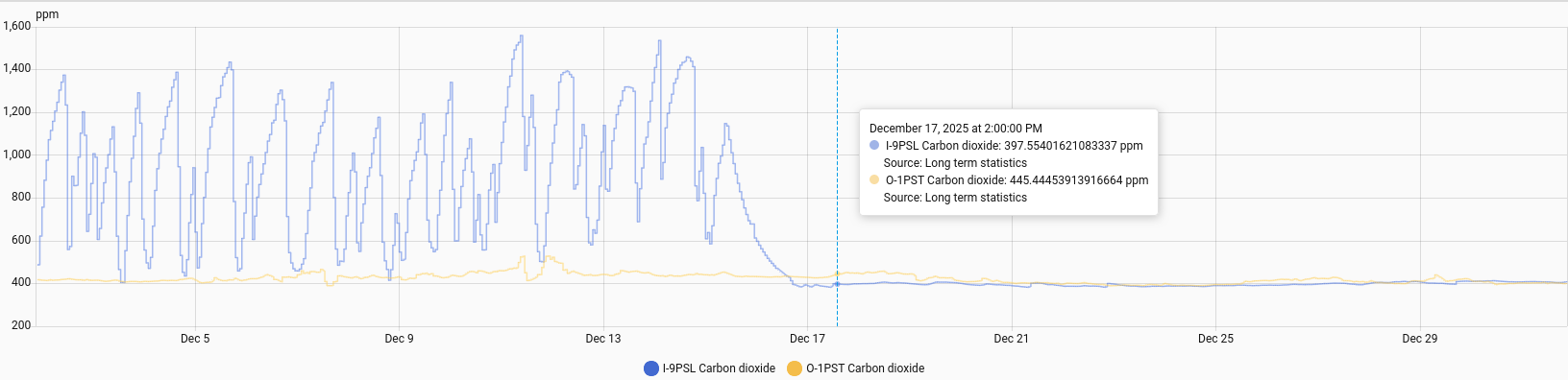 I have an I-9PSL. In the last week I’ve noticed abnormally low CO2 readings when opening the window of the room where the device is.