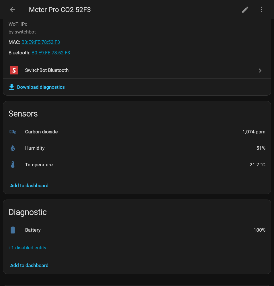 That’s why I came up with the idea of Switchbot sensors for homeoffice/-gym and bedroom and having the Airgradient in the livingroom (also as a reference of calibrating the Switchbots if necessary). Seems like the devices are pretty close to start with, nice