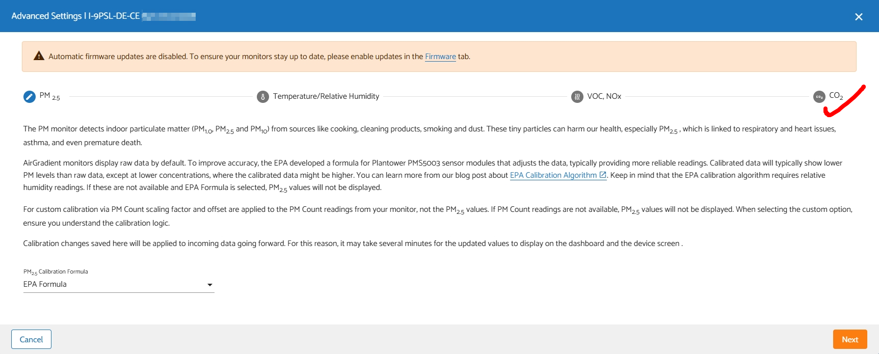 In the meantime, if you want to access that tab, you can try closing this ‘Advanced Settings’ window and open it up again until you see the CO2 tab shows up.