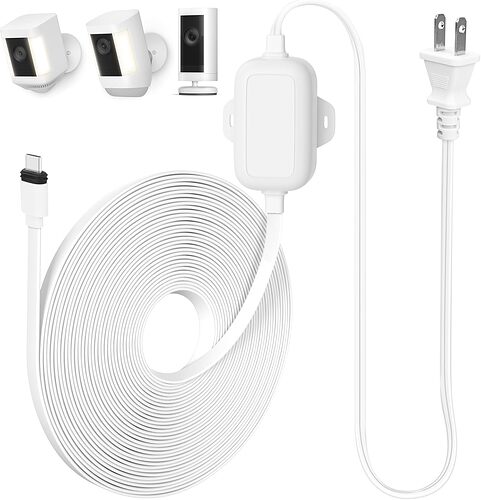 FWIW, I used the following to power my outdoor sensor. It is weather proof, sufficiently long and has the necessary wattage to power the device.