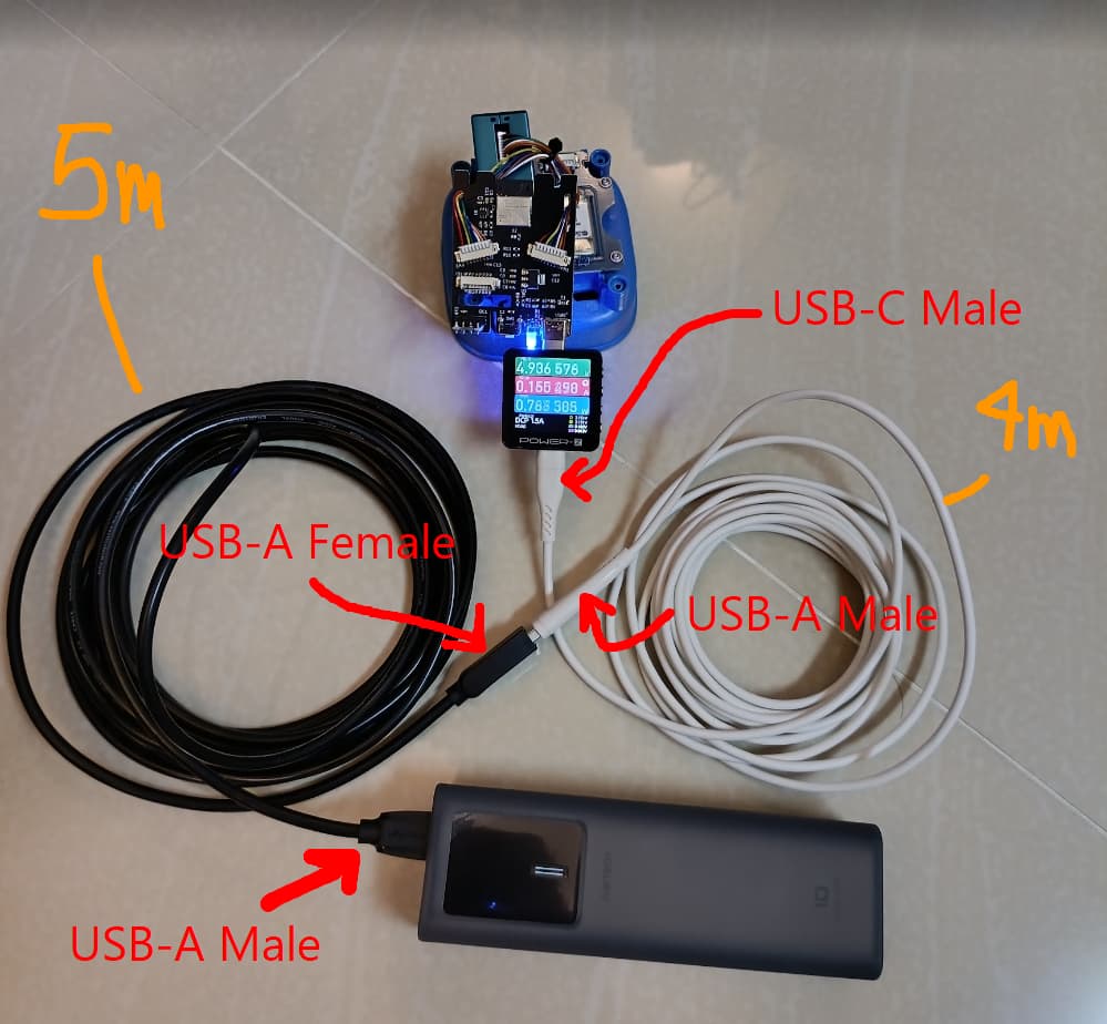 What I have tested is that my 5m USB-A (male) to USB-A (female) extension cable, plus the original 4m USB cable of the AirGradient Open Air, can get my Open Air up and running. The voltage at the end of the Open Air cable (Male USB-C) is around 4.8-5.0V (I tested with both a 5V USB-A power adapter and my power bank with a USB-A outlet as a power supply). Voltage depends on your power supply and cable quality.