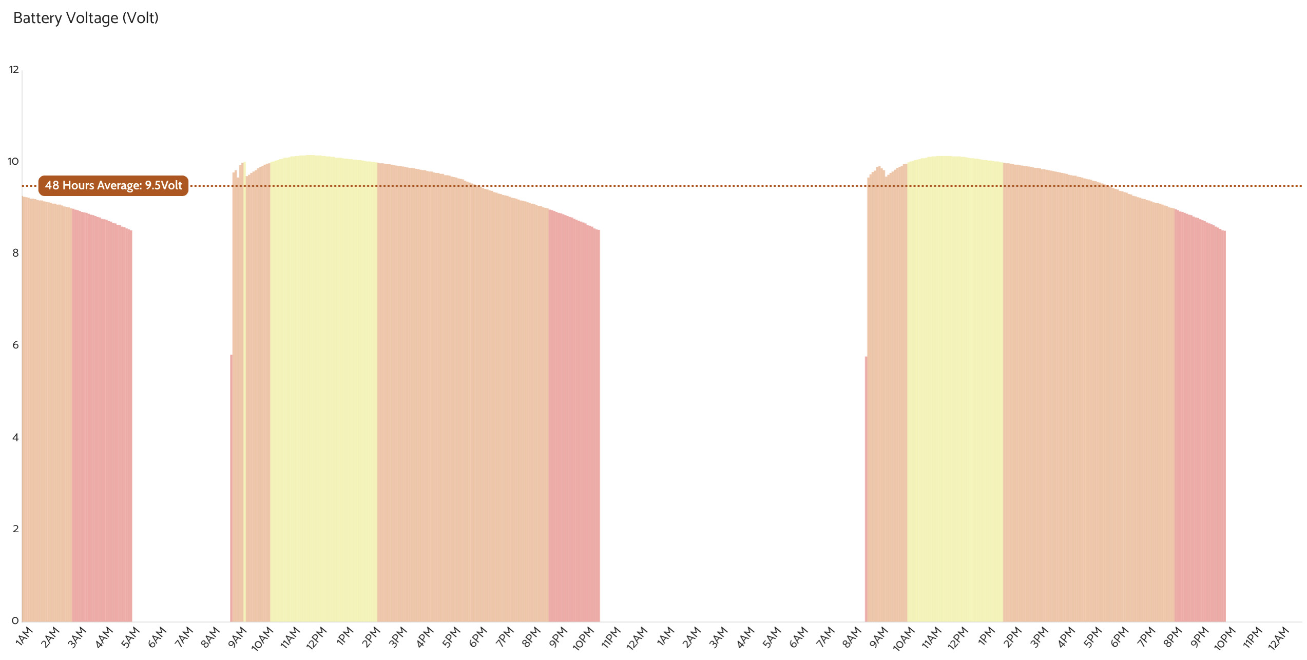 On the Dashboard site, under Outdoor Locations on the far right is an icon with 3 bars. Click on it and you can enable other columns, including “Battery Voltage” and “Solar Panel Voltage”