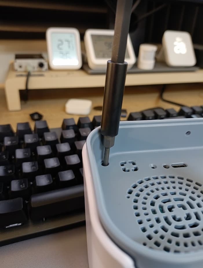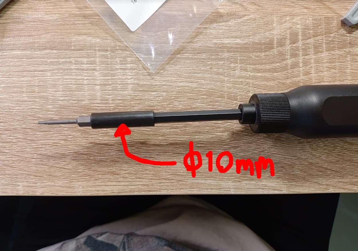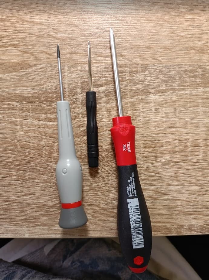 Although the one in the middle doesn’t have a blade length of 37mm (it’s a bit shorter), it still fits the Max’s enclousre screws since the edge of the Open Air Max’s base (the grey plastic) doesn’t obstruct the small handle of the screwdriver. But if the handle is bigger (wider), it could be a problem. So, a T6 screwdriver with 37mm of blade length and a blade diameter no larger than 3.5mm is the best way to work with.
