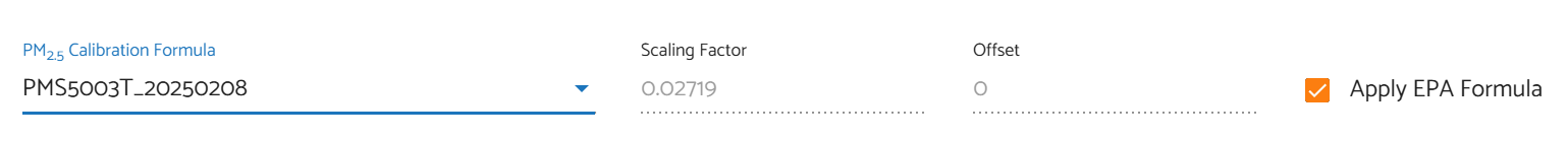 In the PM2.5 Calibration Formula dropdown box, pick the one that matches your sensor type and the batch number printed on the sticker. Also make sure the “Apply EPA Formula” is still checked