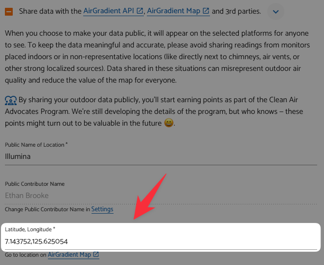 However, using a more unique name (in most cases a full name will be enough), this shouldn’t be an issue. Therefore, if your coordinates already have more than 3 decimal places yet you still can’t see your device on OpenAQ, please check your contributor name and make it more unique if possible.