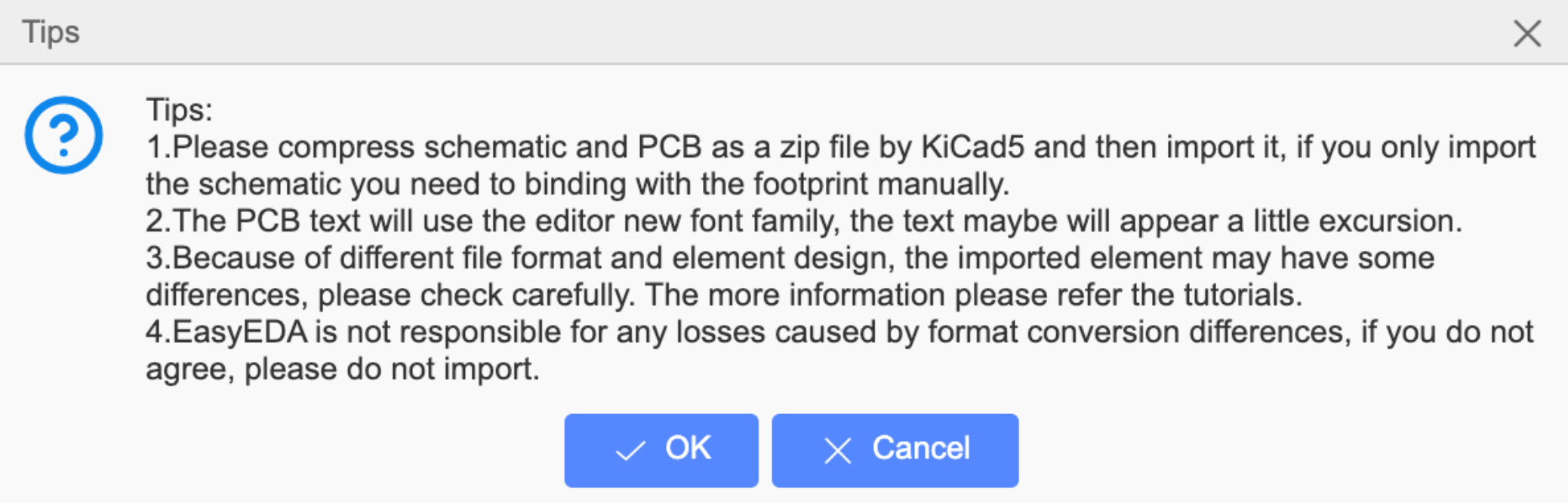 Just tried with an export from within KiCad (File>Fabrication Outputs>Gerbers(.gbr)>Plot & Generate Drill Files) and that works fine.
