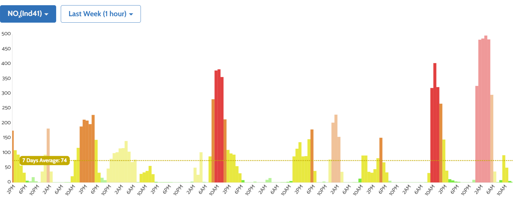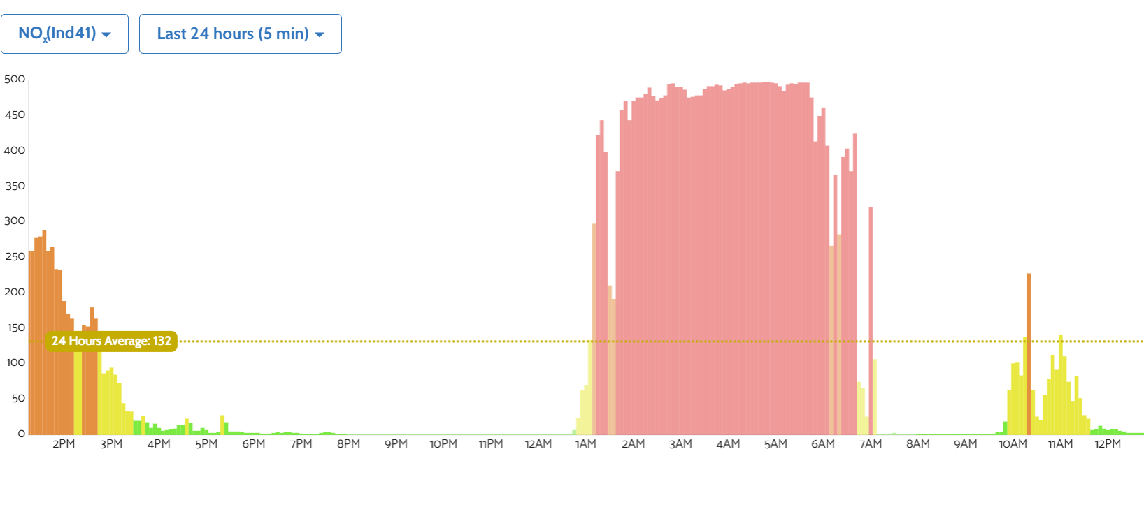 I live in a residential street. There is a building site opposite which has trucks, which I think cause some of the daytime peaks, or possibly gas cooking in the outdoor kitchen. But what would cause NOx to be above 400 for 6 hours overnight?